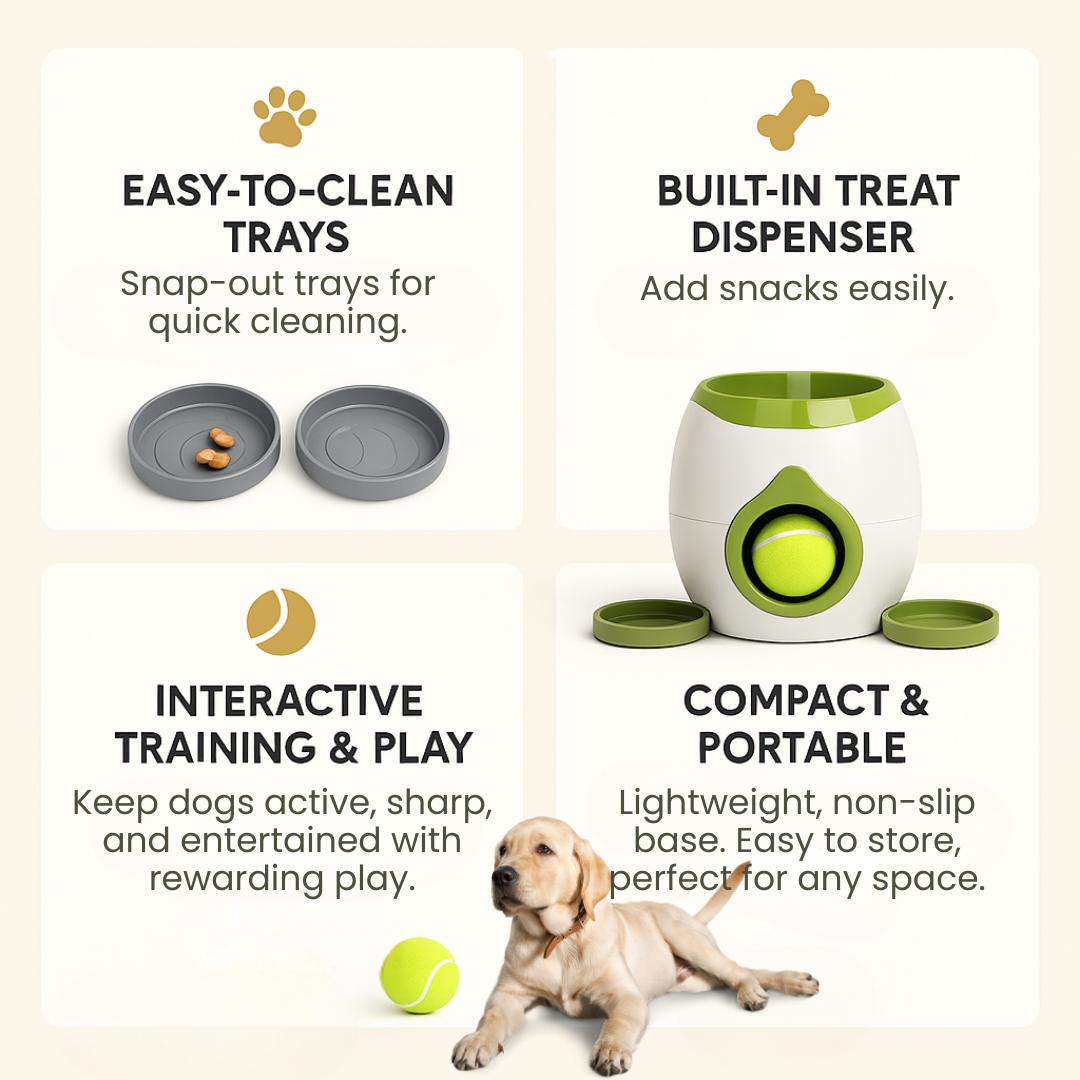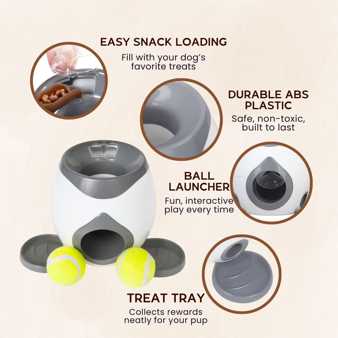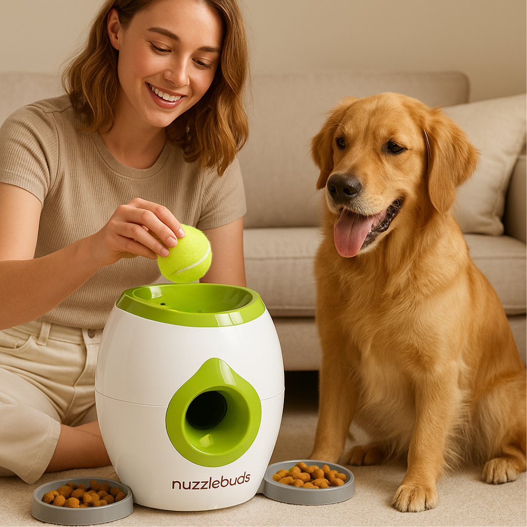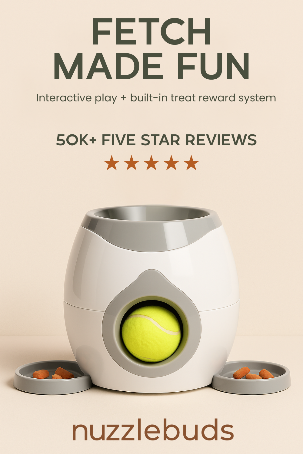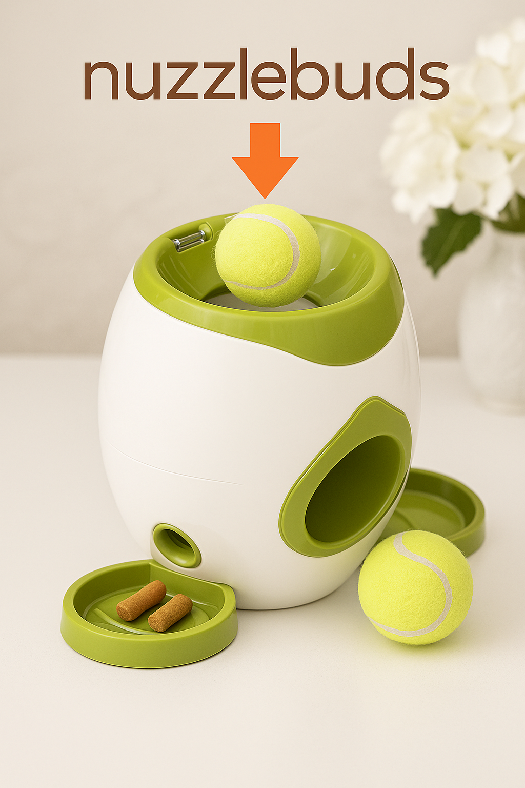 Nuzzlebuds Automatic Fetch Machine & Treat Dispenser - Training Reward Toy with Snack Launcher & Chew-Resistant Design
